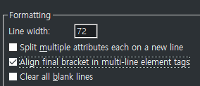 2. Inline Elements에서 "input", "select", "td" 항목 제거 (줄바꿈 하지 않을 항목)
